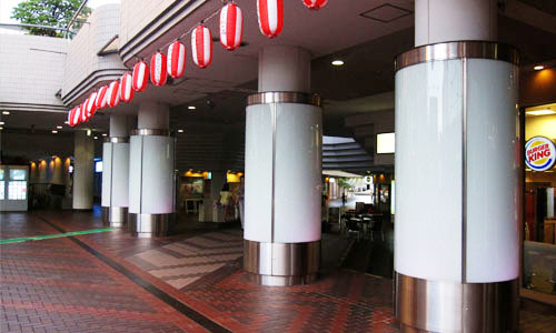 曲げガラスは、板ガラスに熱を加えて軟化させることで、自重により金型の形状に沿って曲率をもたせたガラスです。曲げガラスを用いた建物は、その流麗・優美な曲線美で存在をアピールし、格調高い趣を創り出せます。